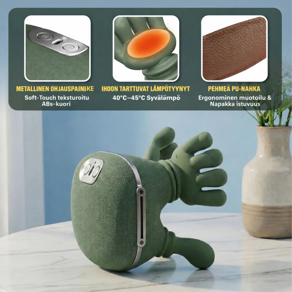 Kyllä. 97 % 10 000 potilaan kliiniseen tutkimukseen osallistuneista sanoi, että se tuntuu yhtä hyvältä kuin oikeat ihmiskädet verrattuna hierontaan kumppanin tai terapeutin toimesta. Bioninen viisisorminen muotoilu jäljittelee ihmisen peukaloiden ja sormien vaivaavaa liikettä, ei värinän robottimaista tuntua.